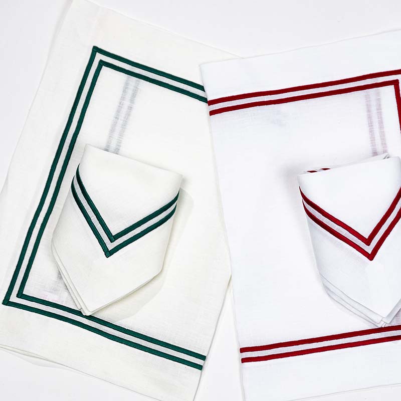 You can further personalize your placemats and napkins with a special embroidery, making each piece uniquely yours.