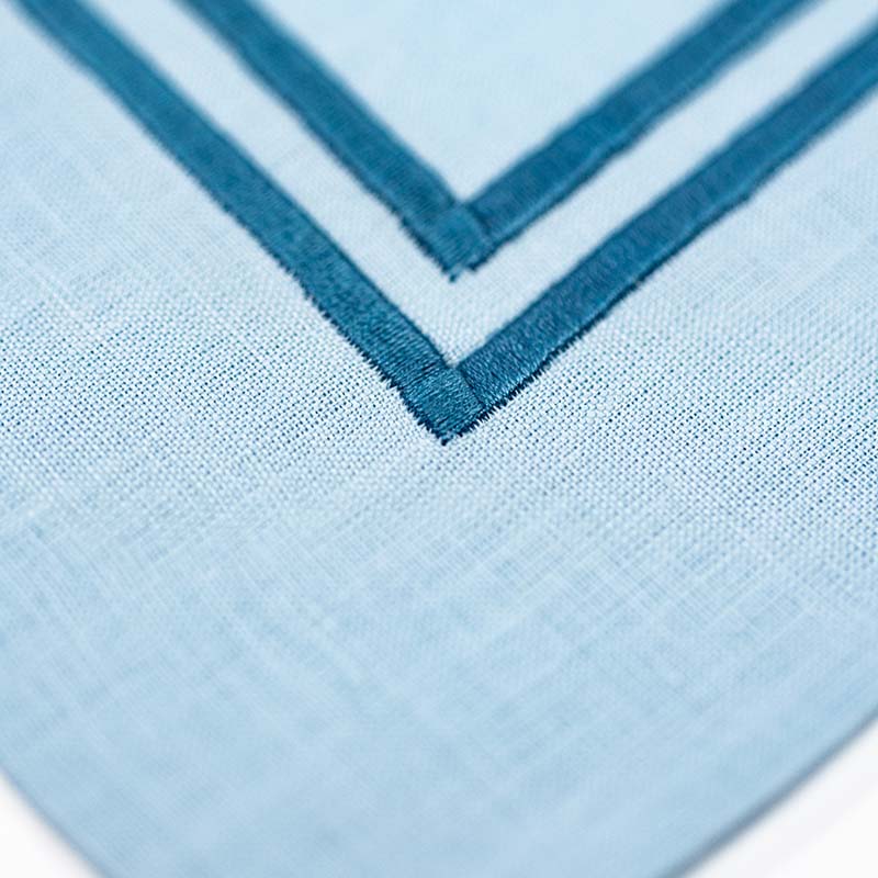 Choose the color of your embroidered cord trims to either match or contrast with the linen—creating a striking effect that adds a true wow factor to your table and impresses your guests.