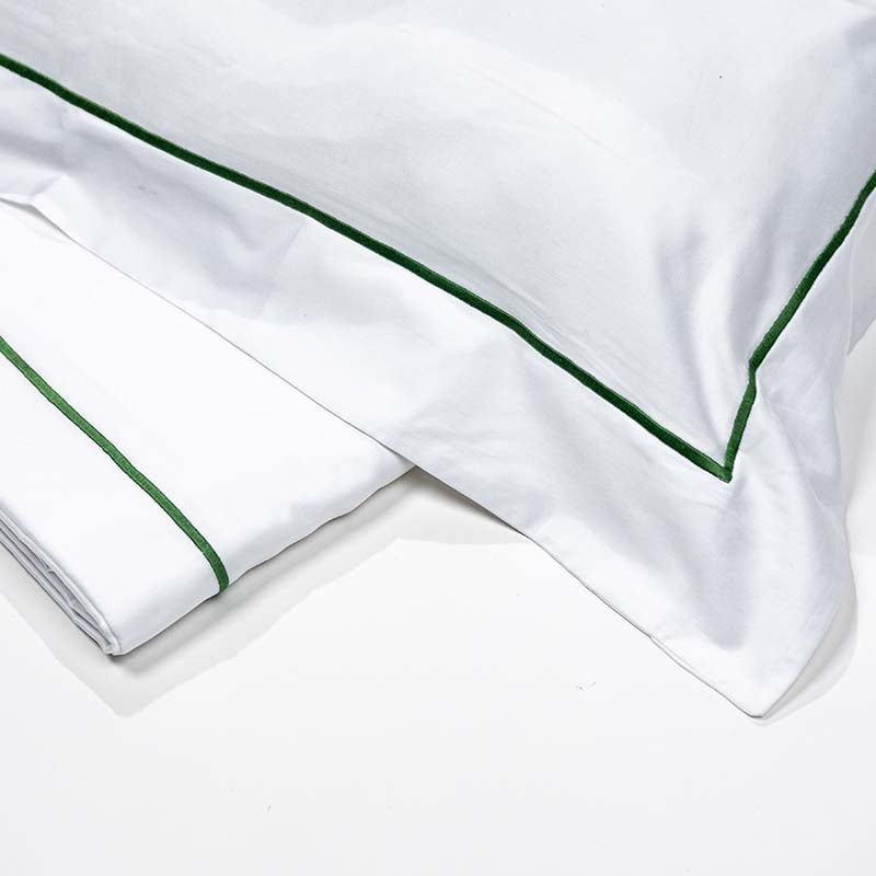 Create a serene bedroom with our luxurious satin or Egyptian percale bed sets. Featuring a single elegant embroidered stripe, customizable in color and size for a perfect fit. Experience unmatched softness and comfort every night.